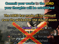 ProverbMinutesOpening https://youtu.be/HRaIj4dusxc Proverb Minutes is my endeavor to bring Biblical wisdom to light for all to know. PowerPoint has been used as the main construction of these videos. Jeremiah 23.29, Psalm 34:14, Revelation 1:3. God desires all in His creation of life to enjoy eternal existence. Not all will be allowed if found to be offensive where the glory of life in truth is discarded. All on earth are offensive, no matter who, all sinners alike, yet His desire is for us to become aware of His plan of salvation, and implement those redeeming actions to return under His hand, and offering of Grace. Faith and belief in God outweigh the condemnation of others where obsessive judgements condemn yourself. GodTheCreator https://youtu.be/k1fXrWGKCC8 Isaiah 44:24 is reviewed. Many find it difficult to believe in God as the calamities of living are so stressful, and human judgments condemn one or another. Testing and challenging us is that Time is a temporary event, to expose the character of each autonomous soul. To find God individually, no matter who, is to find that peace that drives a heart to love more, just for the sake of loving. Word https://youtu.be/vqjpnLsC2g4 So it is the Word in which we seek truth, no matter what language. Nothing is more valuable than the truth for its’ foundation builds on all that is noble. Truth serves a heart mercifully joining one with the divine. Our deeds are purely in the midst of our hearts as the pillar defining who we are. We need to keep our thoughts pure in care of others, as it is in fact, the pillar of our faith in the sight of God. Pray He preserves us from wicked destructive temptations. May we be found worthy in the tower of His great living truths. More than what we think, it is about what we do. Test https://youtu.be/wbueniW19zE 2nd Corinthians 7:10. To know or to cling only to the outward world, or the vapors of time that can be seen, leaves one completely searching on near empty. He hangs the Earth on nothing. God is greater than time. Times gone by remains in a dustless past where many find themselves unreasonably stuck, with biased decaying hearts, mired in sorrows and angers. Depression and anxiety are the illnesses of our times. Pointedly, life is solely in the present, and God is unimpressed when impulse’s desperation or desires ignore His truth of wisdom’s light, found in His Word. God patiently waits to see what a soul asks or does not ask of Him. Essentially what sustains us is the spirit given by God. To live in a gripeless moment is a challenge for all, especially without knowing God’s own call to return to love; for us to come to that which is greater than self. Self-destruction comes from a lack of faith and knowledge in His truth. Worries https://youtu.be/aRo9r7ZVe-M Worries defeat peace of heart Psalm 56:3. It is purely trust in Him that enables one to overcome whatever life throws at us. If one feeds compulsively on worry, one has not yet fully come to God accepting His love for life. Everyone at times has trouble enter into their life with varying degrees, and it would be hard to understand mortal life without struggles. The underlying questions during these trials is what one cares deepest about, and where, and what, one abides in pursuing relief. Does one go to church or a bar, etc.? Thankfully praying or arrogantly cursing? Facing reality is not the same as escaping from it. Worrywarts are escape artists and the ultimate extreme ends in suicide. Higher emancipation is finding an escape to reality where His light lifts us to the heights of heaven and beyond. Humans break promises but God will not. Peace is the opposite of worry and what He wills for each one of us. To gain the greatest of what humanity offers a soul is to believe in God. One https://youtu.be/5tGXDM_gDPg Ephesians 4:4-6. It is God that declares what is and what He has devised as His saving Grace, in offering each of us eternal life. Man cannot change what God has ordained, yet the religions of man are more often pitted against themselves. Does Hinduism agree with Catholicism? The divisions in Christianity is massive. Or is it Buddhism agrees with Muslim doctrine? From mild to extreme, man may tolerate man’s convoluted follies, where contempt and lies among men reside. Does one follow God or man? More often man’s religious elitism nature is to diverge away from God’s will, and implement more self-created humanist doctrines. Does God change? No, man more often caters to the crowd of the largest pocket book collection. Madness can be found where obsessiveness ends in looking to the greatest edifices of man, and not God’s spiritual truths. Man’s lust for power and domination, along with a myriad of other such infections as envy, greed, and anger feed in to many who claim to be holy. Following man in his isolated pious deceptions does not create the portal to return to the true God. Opinionated ditch diggers of man will never find the mountain of God. Many rely on men to find spiritual solace, but this misses God’s call to come to Him directly from one’s deepest heart. The bottom line of anyone’s true spiritual identity is how God is found. From the real inside, or the outside fading façade? Faith https://youtu.be/_b9OJsiEIJw Faith is belief in yet what is unknown Hebrews 11:6. Is God with you or is He someone you call for? It is a question of being settled or not. Many times we search for something already here. To know Him is to know He waits closer than we can know; from the core of each of our cells. As He counts hairs, in His image God gave us the power of autonomy, in a dying universe. In mortal life we all must face the dichotomy of being lonely verses being alone. To be lonely is to deny others are present in an isolated chasm of self-inflicted torture. The bottom of a heart is either found or lost. We are all alone among one another; it is a blessing, not a curse, and we need to come to know He is here with us e